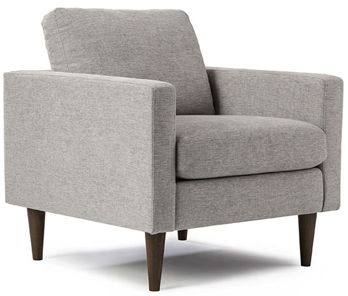 The inviting vintage style of the Trafton Chair will provide a fresh, yet classic appeal to make a statement in any space. Loose back and reversible seat cushions are framed by sleek track arms standing atop beautifully finished tapered wood legs available in several different finish options.This chair is built to last and fully customizable with over 700 fabric options and select top grain leathers to create something truly unique.Read More
