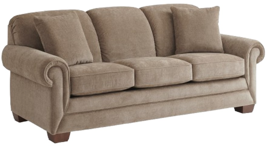 The La-Z-Boy® Mackenzie Twig Queen Sleeper Sofa combines classic style with practicality. Upholstered in a neutral "Twig" fabric, it features rolled arms, welted trim, and box seat cushions. This sofa easily converts into a queen-size bed with an innerspring mattress, perfect for accommodating guests in any space.Read More