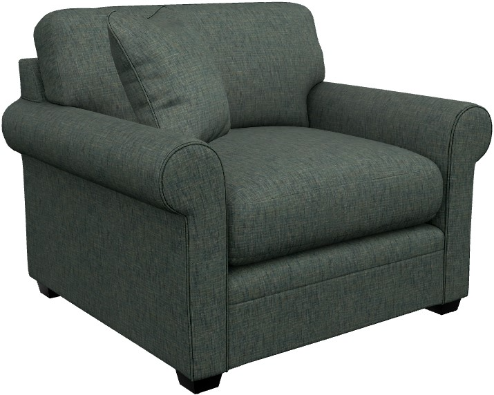 Rolled arms, decorative wood legs and welt trim lend laid-back sophisticated style