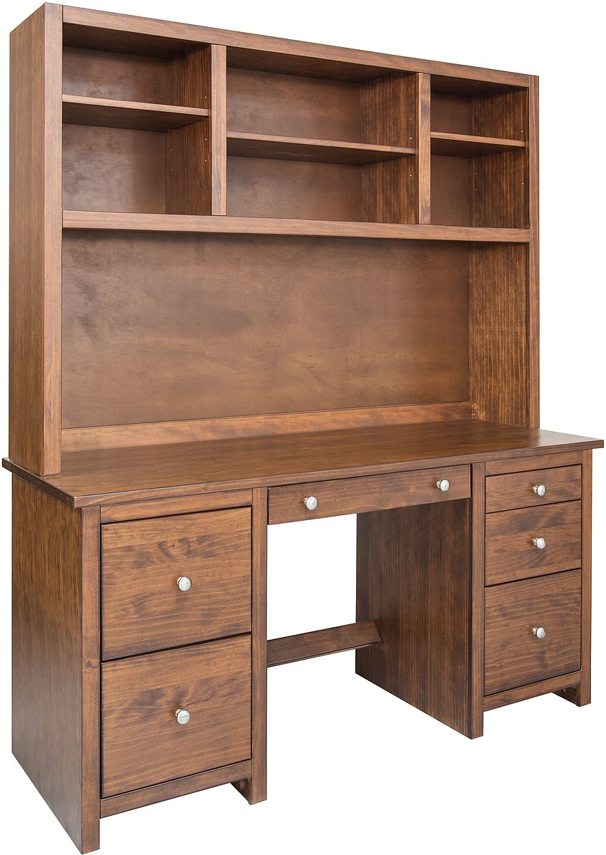 This Home Office desk and hutch set from Mako Wood Furniture features solid pine wood construction and plenty of storage. Made in Canada, it's available in a multitude of finishes. All hardware included with this desk is made of metal.Read More