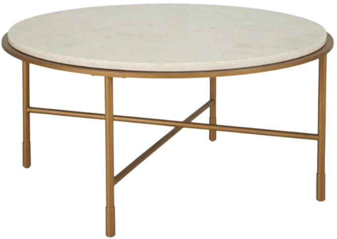 The Signature Design by Ashley Alben white cocktail table with antique gold base offers a reliable surface for drinks, décor, and everyday essentials. Its sturdy construction and versatile style make it a practical centerpiece, enhancing functionality and convenience in living spaces.Read More