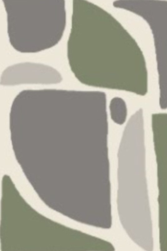 Machine woven shag, abstract design in green, gray and ivory