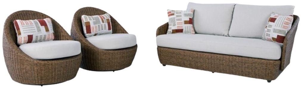 Poolside comfort and style have never been so chic. With this outdoor loveseat and swivel chairs set, lounging alfresco is effortlessly cool. The woven resin wicker combines intricate beauty with a dose of durability. High-performing fabric helps to keep pillows and cushions looking fresh over time.Read More